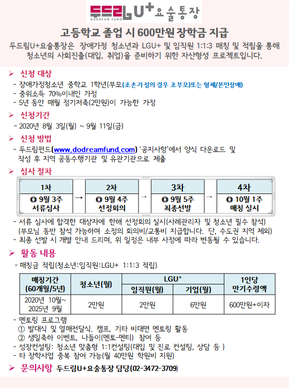 -문의 시 연락바랍니다. 한국장애인재활협회 U+요술통장 담당 이해인(02-3472-3709)-