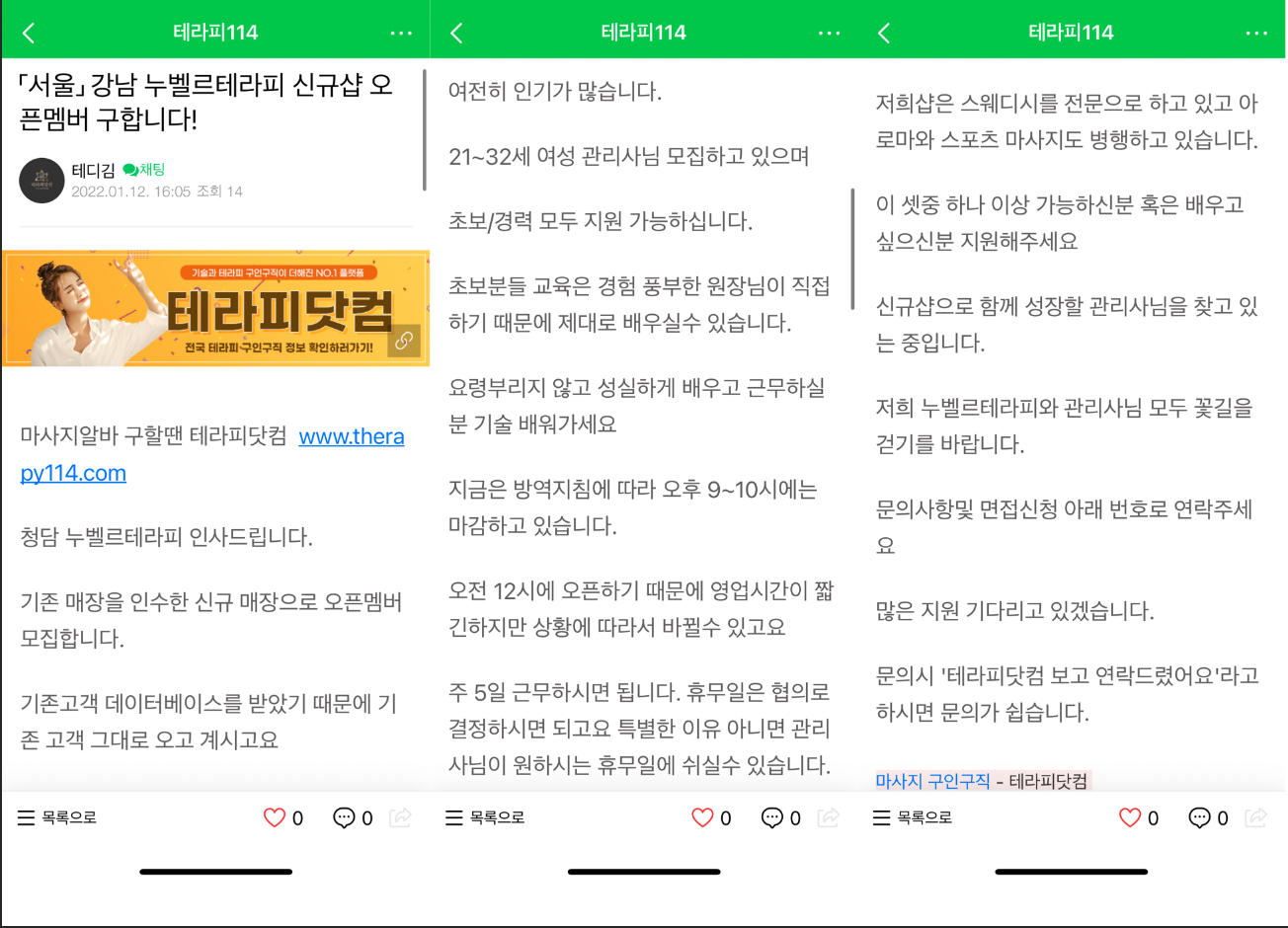 우연히 청담에 위치한 누벨르 테라피라는 곳에 최근 관리사 모집공고를 보았더니