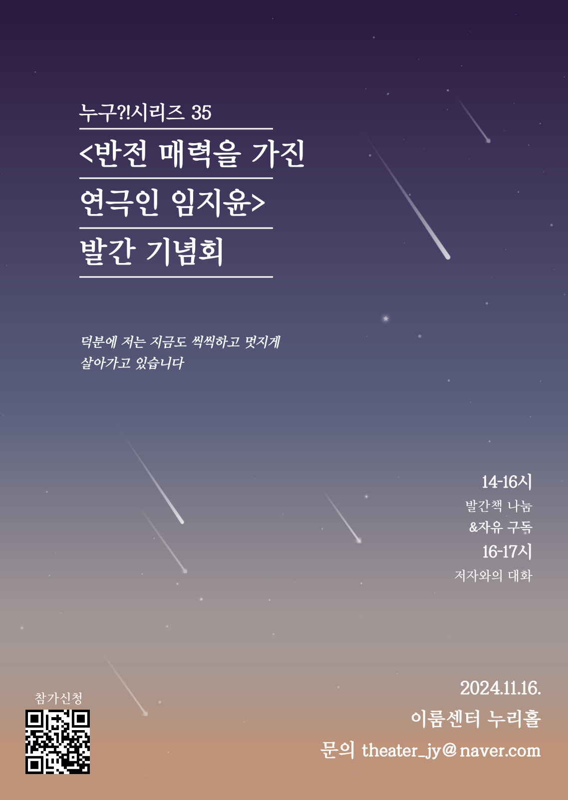 극단 제이와이 임지윤 대표가 그의 자서전인 ‘반전 매력을 가진 연극인 임지윤’ 발간기념회를 오는 16일 오후 4시 서울 여의도 이룸센터에서 개최한다.