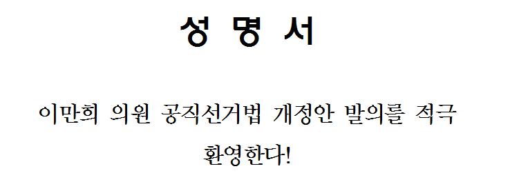 성명서 이만희 의원 공직선거법 개정안 발의를 적극 환영한다