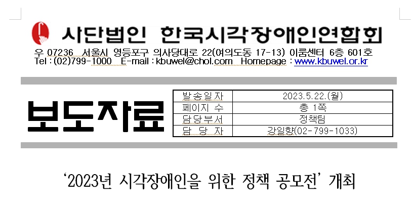 [보도자료]'2023년 시각장애인을 위한 정책 공모전' 개최1