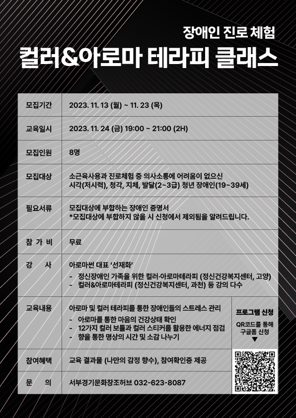 장애인진로체험 : '컬러&아로마 테라피 클래스' 모집