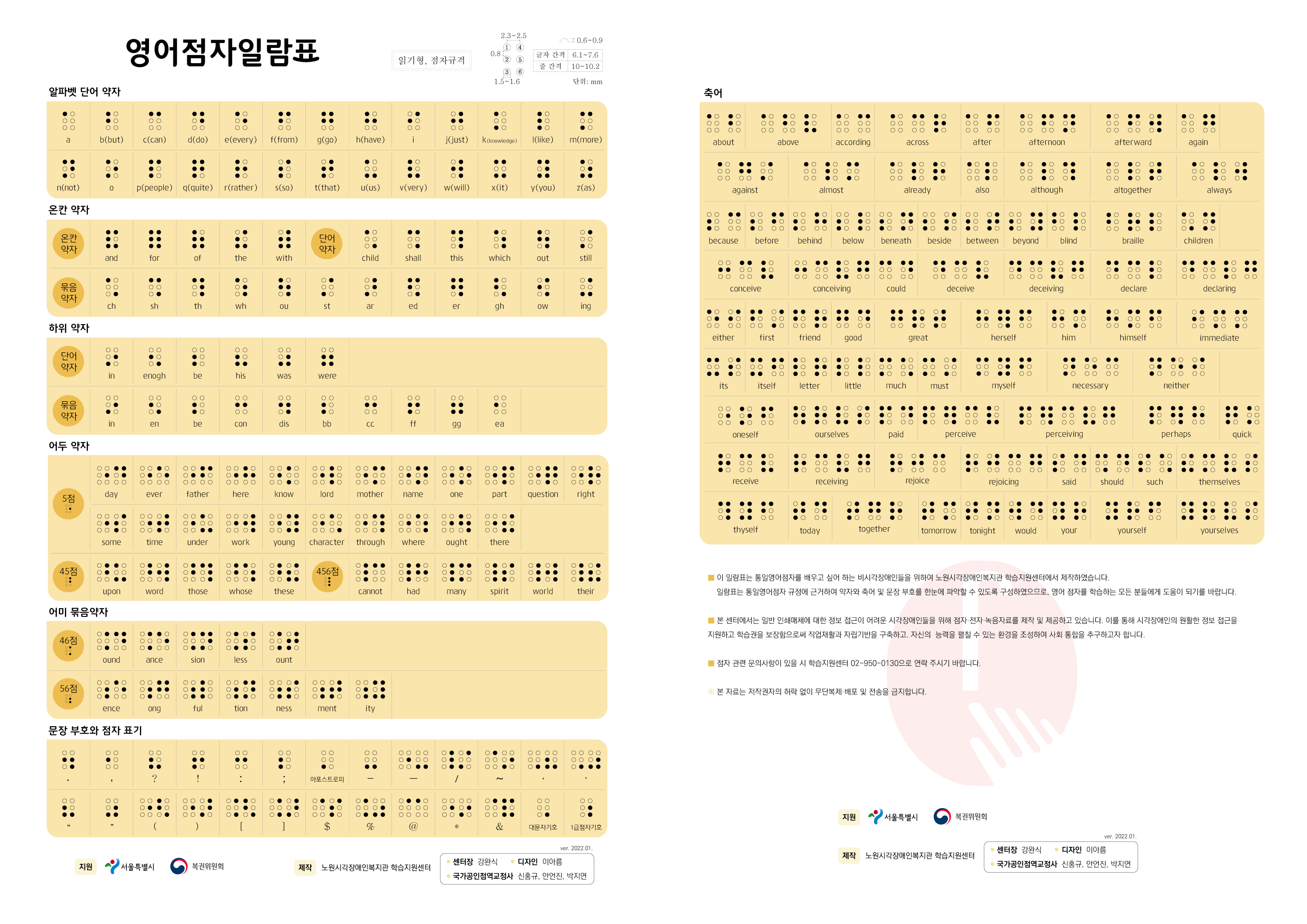 첨부파일 한글_점자일람표(한국시각장애인연합회).jpg영어_점자일람표(노원시각학습지원센터_2201ver).jpg