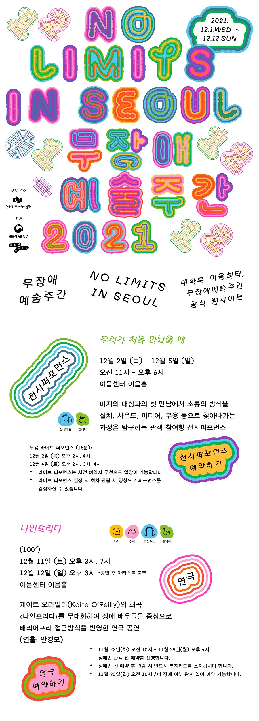 예약: 무장애예술주간 공식 웹사이트 http://nolimits.kr/2021/program/performance/encounter/