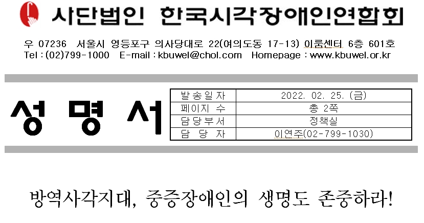 최근 한 중증시각장애인이 PCR검사를 받으러 홀로 이동하다가 사망한 사건이 발생했다. 삼가 고인의 명복을 빌며 유가족에게 위로를 드린다.