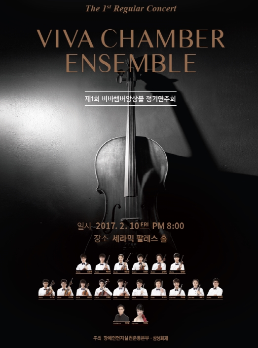 16명의 발달장애인으로 구성된 비바챔버앙상블의 첫 정기연주회를 오는 2017년 2월 10일(금) 세라믹 팔레스 홀에서 갖는다.