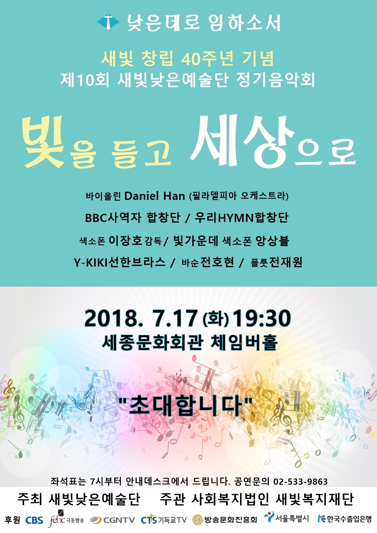 새빛 창립 40주년 기념 "제10회 새빛낮은예술단 정기음악회"에 초대합니다.