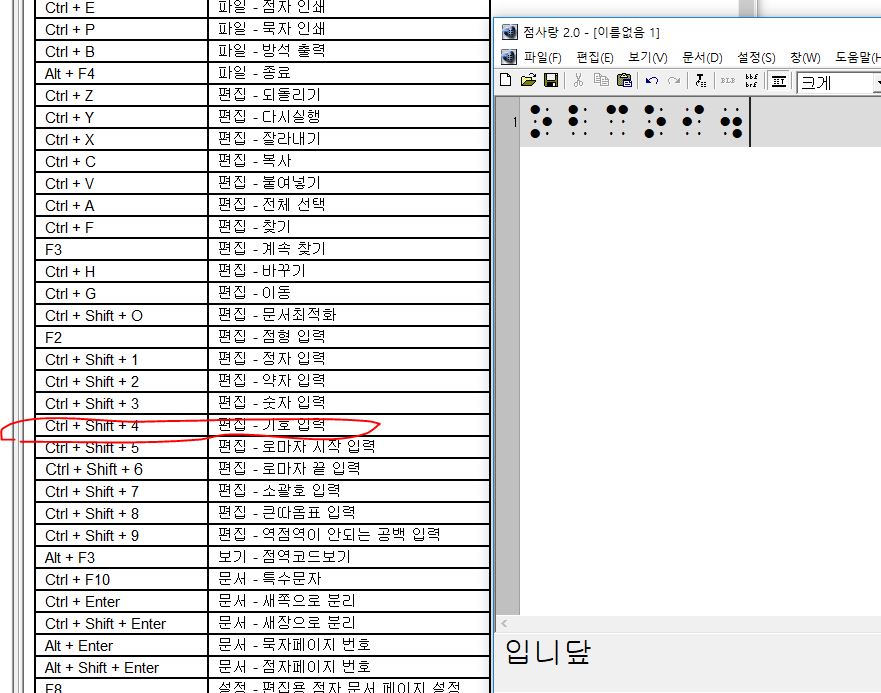 ' 입니다. '를 입력할 경우, 역점역을 고려할 필요없이 프로그램 상에서 한글과 똑같이 [ 이+ㅂ+ㄴ+ㅣ+다+ㅍ]로 입력을 해도