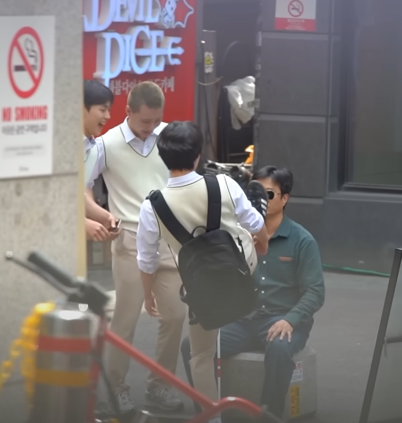 시각장애인을 앞에 두고 범죄나 다름없는 행동들을 찍어